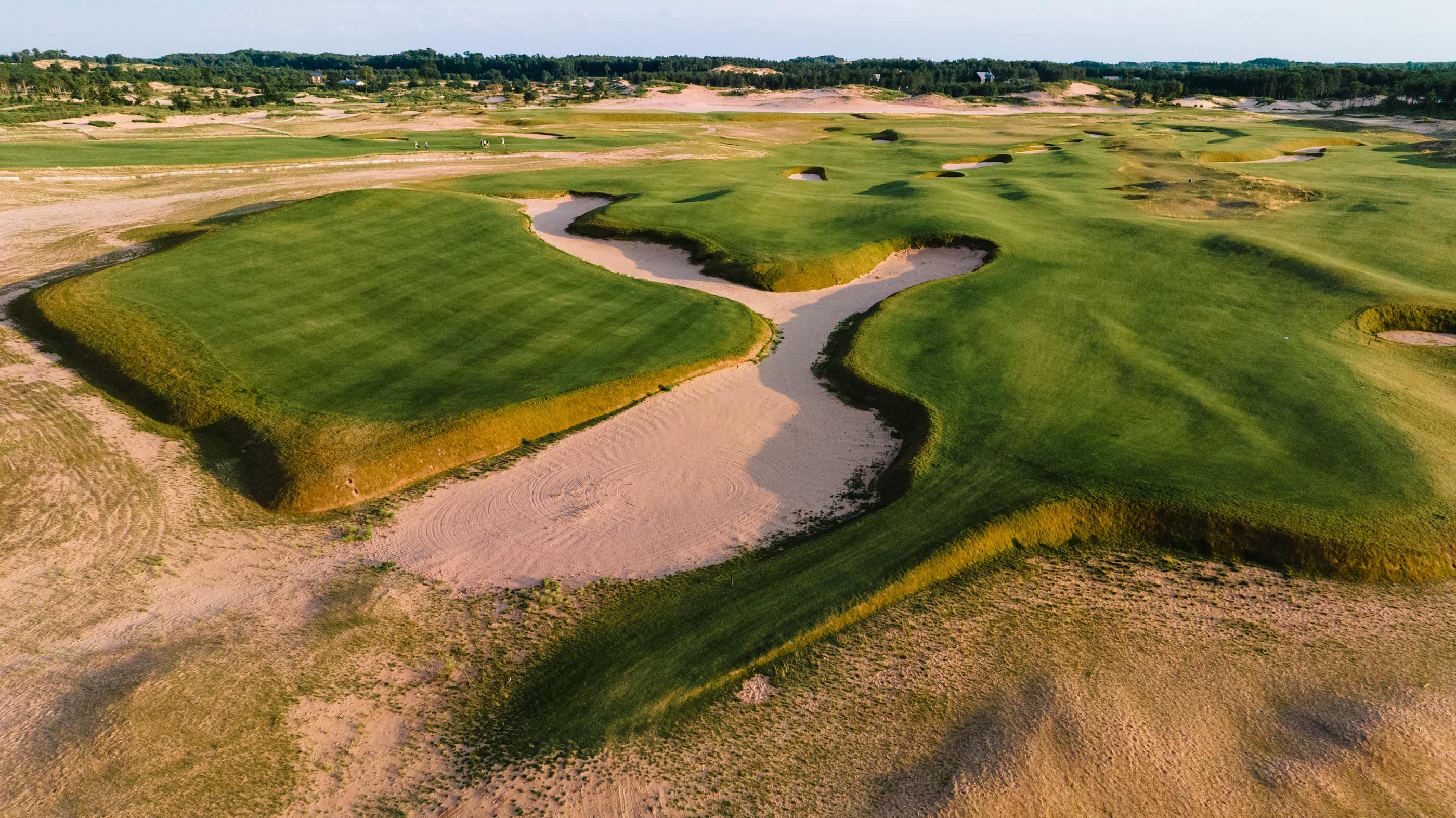 Green complexes. The green complex is the green itself plus the bunkers, slopes, and surrounds immediately around it. This is where the most important design decisions live. A good green complex creates different challenges depending on where the pin is placed. Front-left pin on a green that slopes front-to-back and left-to-right? Now the approach shot needs to account for the slope running away from you. Back-right pin behind a bunker with a runoff area beyond? Now you're choosing between attacking the pin and risking the bunker or playing to the safe side and accepting a long putt. The greens at Pinehurst No. 2 (crowned, with runoff areas on all sides) are the most influential green complexes in American golf.
